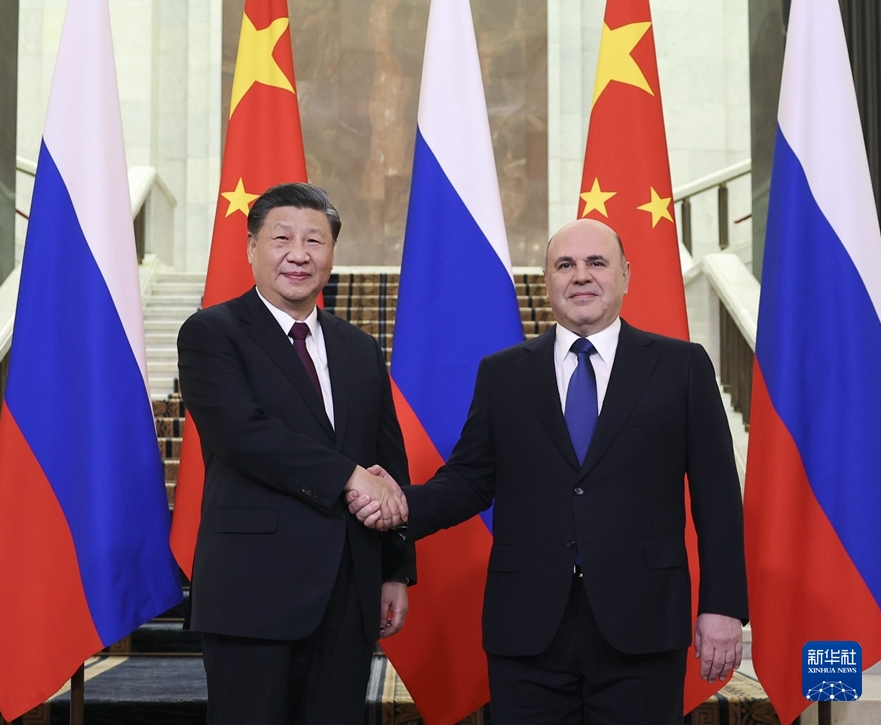 习近平指出,中俄是相互最大邻国,又是全面战略协作伙伴,保持中俄关系健康稳定发展,符合两国关系的历史逻辑和两国人民的根本利益。中国成功召开了中共二十大,前不久全国两会选举产生了新一届国家机构领导人,中国党、国家和人民空前团结,正在全面推进中国式现代化。中国新一届政府重视发展中俄全面战略协作伙伴关系,愿同俄方通过两国政府总理定期会晤等机制化交往渠道,推动实现两国合作新目标,取得更多新成果。