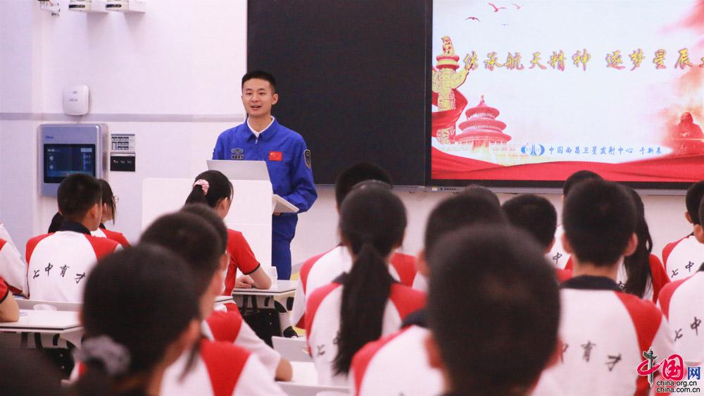 少年强则国强,少年进步则国进步。为在广大青少年心中播撒航天报国、航天强国的精神火种,6月8日上午,西昌卫星发射中心组织工程师于新辰走进成都七中育才学校,以线上线下相结合的形式,为四川省全体中小学生进行航天精神公开课讲座。