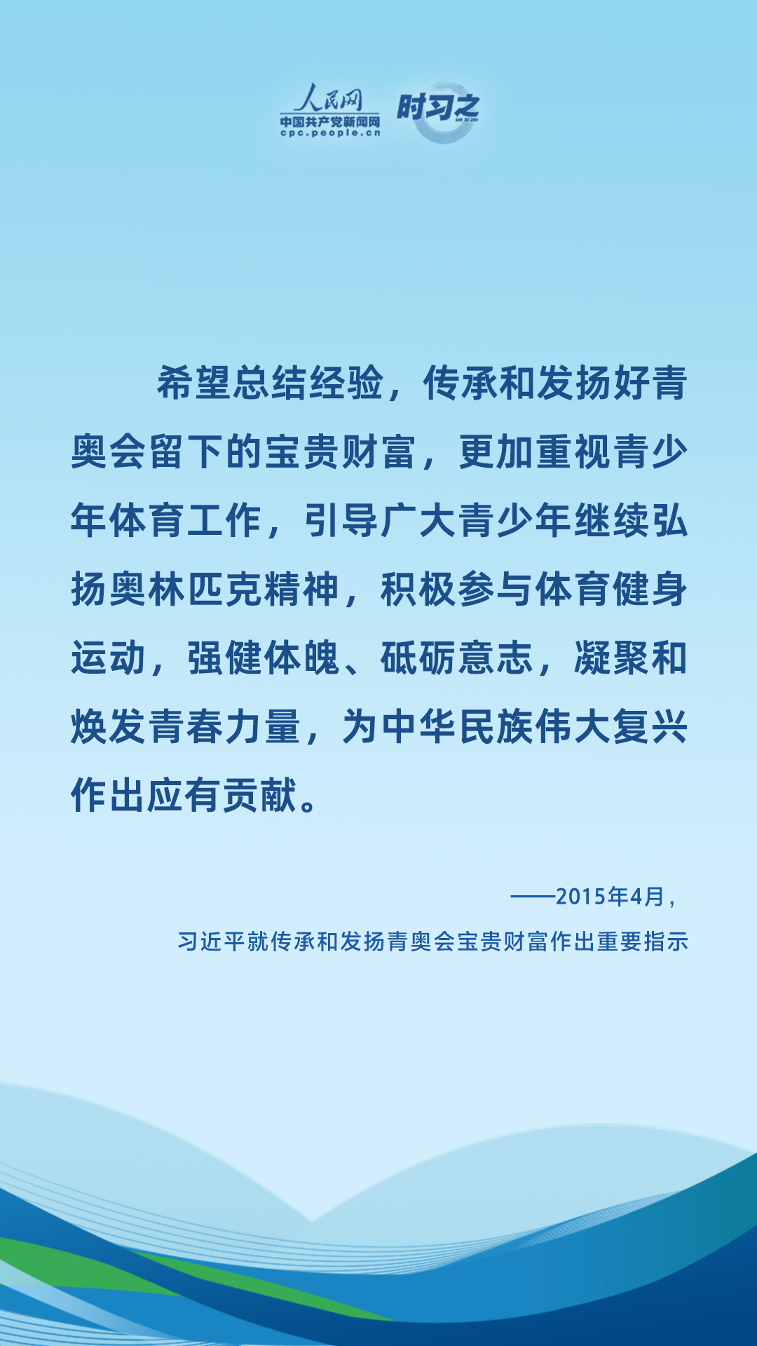 6月23日是国际奥林匹克日。双奥之城兑现冰雪之约,体育事业踏上新的征程,与奥林匹克一路同行,中国体育写下了一页又一页的华彩篇章。习近平一直心系体育事业发展,并多次在不同场合与体育工作者面对面加油打气,句句铿锵话语时刻激励着广大体育工作者,不断弘扬奥林匹克精神和中华体育精神,推动中国体育事业蓬勃发展。