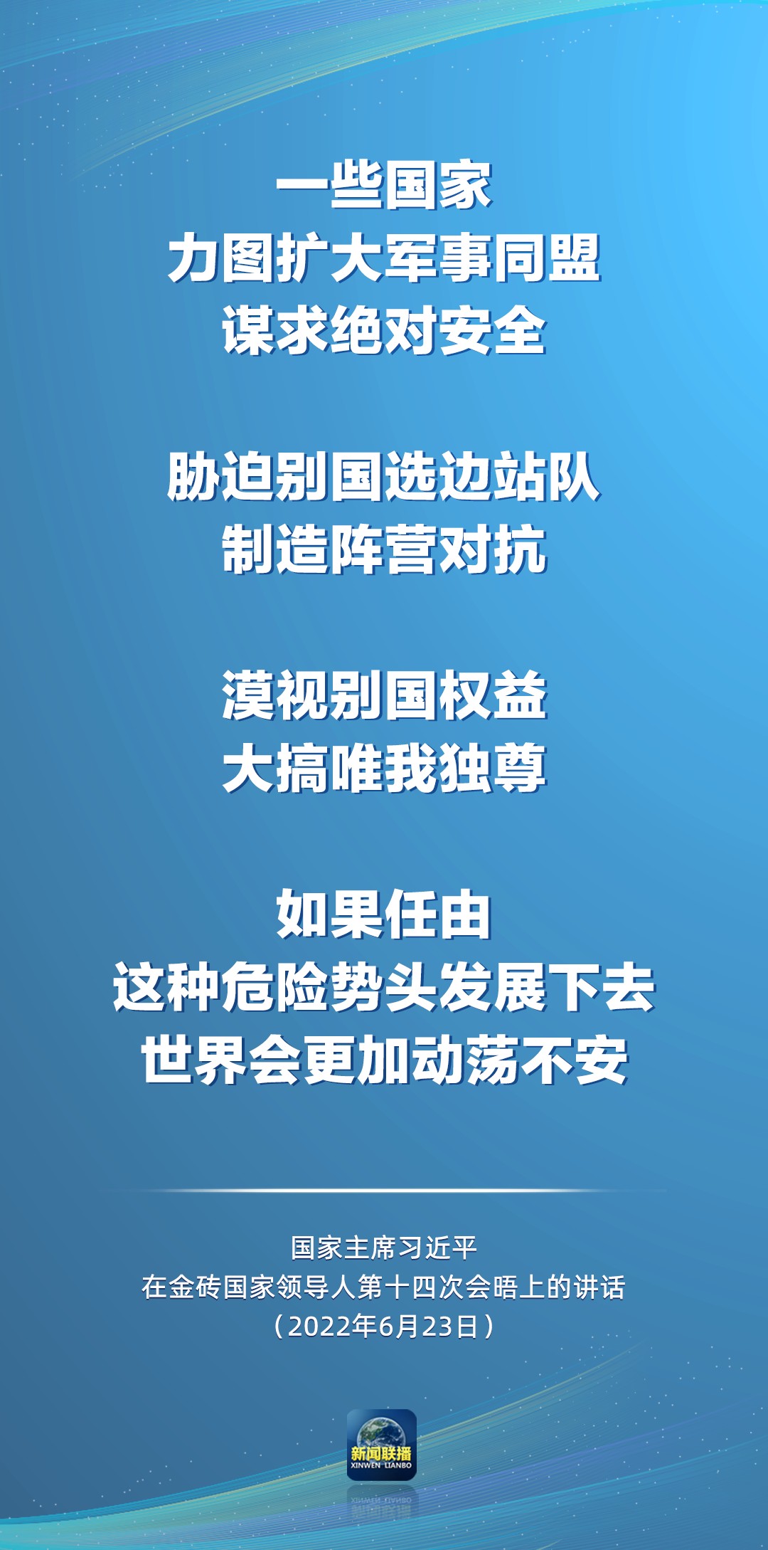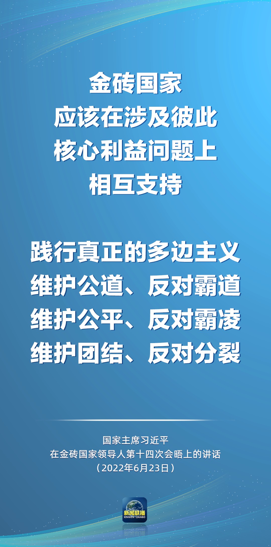 国家主席习近平6月23日晚在北京以视频方式主持金砖国家领导人第十四次会晤并发表重要讲话。