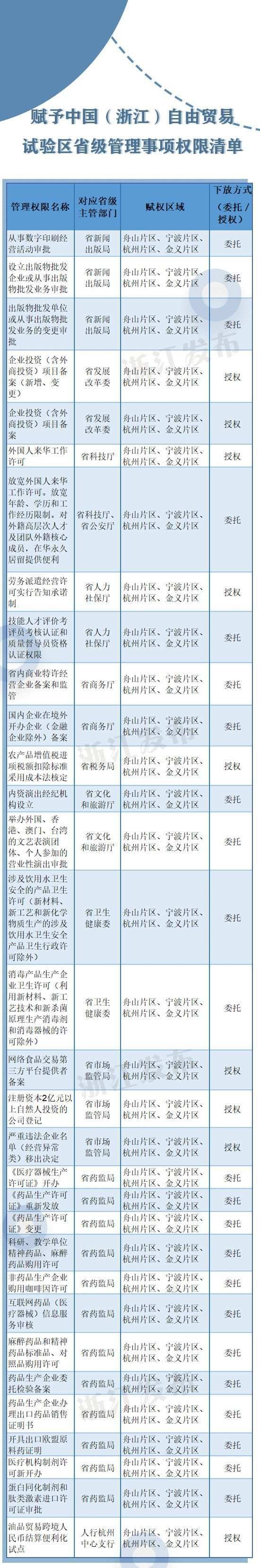 赋予中国(浙江)自由贸易试验区省级管理事项权限清单↓↓