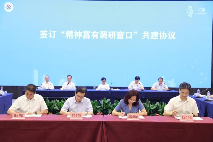 省社科联、省新型智库代表、省高校代表和中共德清县委宣传部签订“精神富有调研窗口”共建协议。