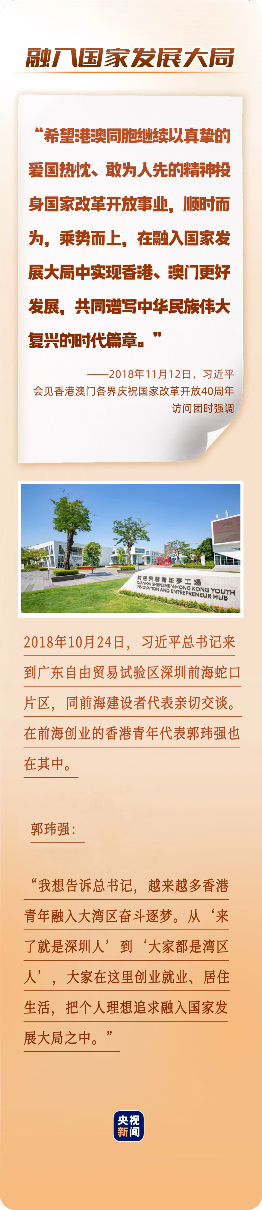 2018年10月24日,郭玮强在“前海石”边见到了习近平总书记,真切地感受到总书记对香港青年的关怀关爱。