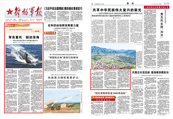 “习主席在航泊日志上郑重签名,离艇前,又和我们进行了交流。大家深切感受到统帅的关怀,也时刻提醒自己,要以最高标准、最高质量完成好每次任务。”谈起那天的情景,某艇员队航通长宫书伟和舱段技师王同严的脸上洋溢着兴奋。