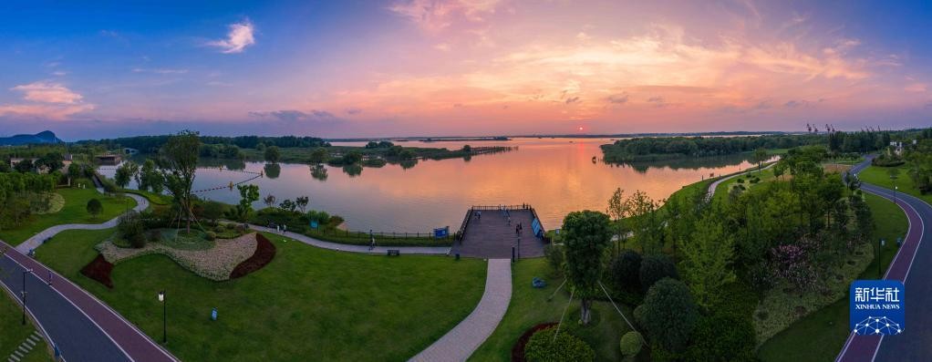碧水蜿蜒,绿带交织。长江之畔的安徽马鞍山薛家洼生态园,如今是当地群众亲江亲水亲绿的城市生态客厅。