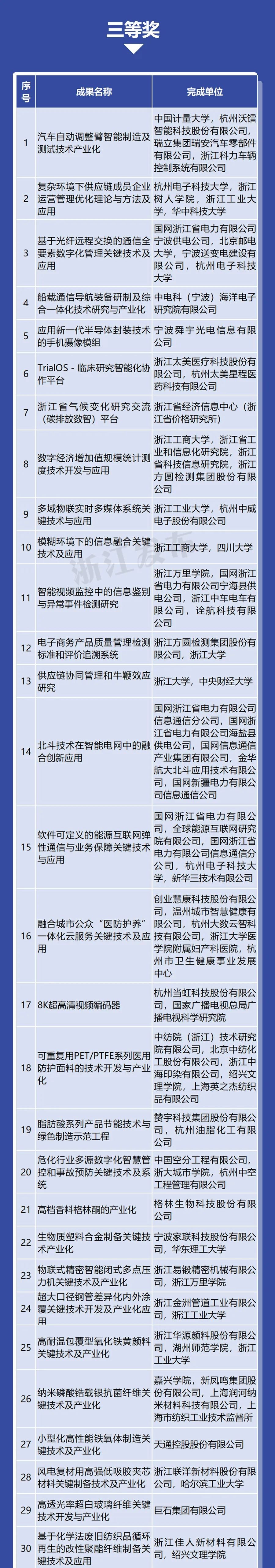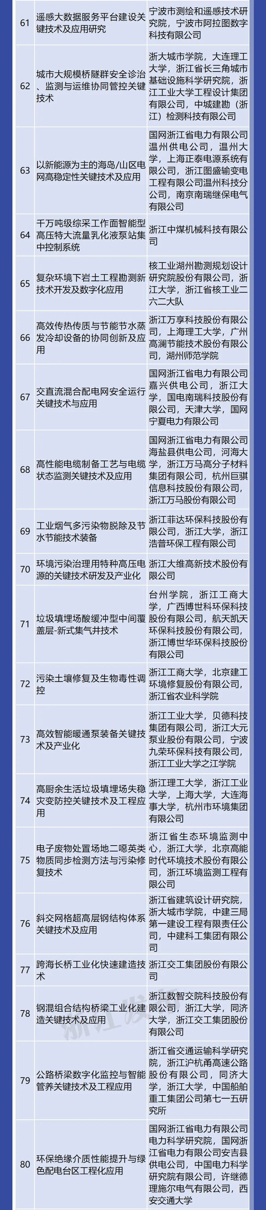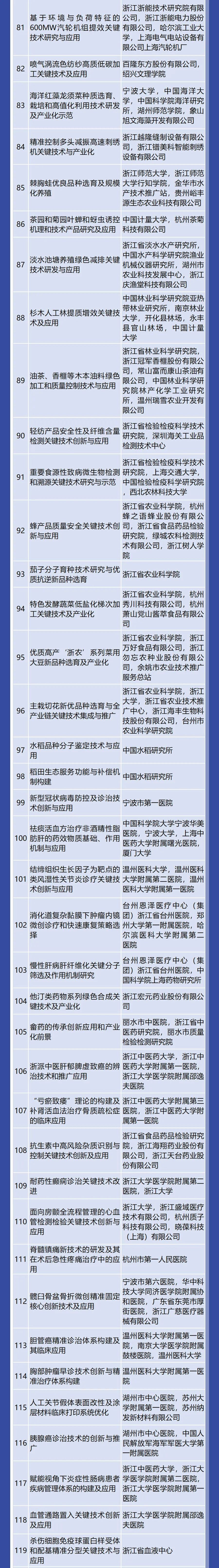 国家重大项目、重点科技计划担纲者等高层次人才领街完成的一等奖成果36项、占82%;所有完成人中,70、80后科技工作者占81%,青年科研人才成为浙江科研主力军。
