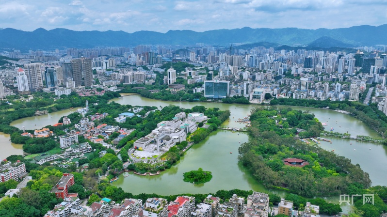 福州,全国最绿城市之一,鸟瞰西湖,宛如翡翠(央广网发 石磊磊 摄)