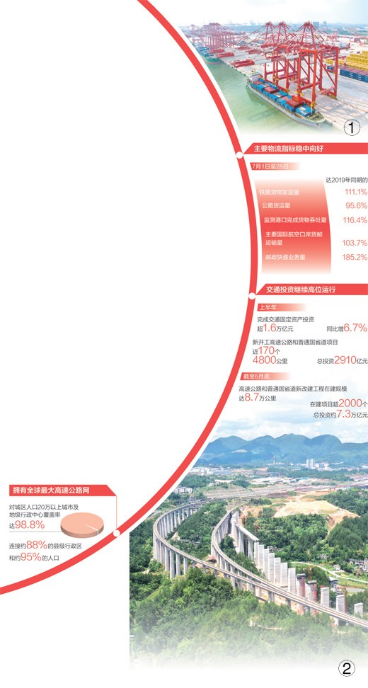 畅通交通物流,需要通过持续完善基础设施来强化“硬支撑”。当前,我国已经建成全球最大高速铁路网、高速公路网、世界级港口群,航空海运通达全球。加快建设交通强国,仍有不少潜力可挖、不少短板要补。舒驰表示,下半年,将坚持适度超前,以联网补网强链为重点,实施一批重大交通工程,加快构建现代化高质量国家综合立体交通网。
