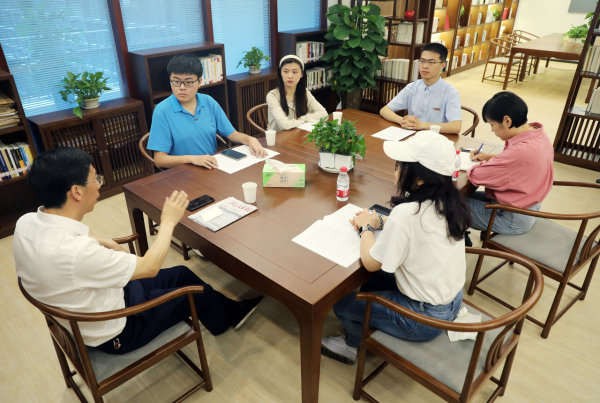 省人大常委会研究室负责人与大学生们交流。浙江新闻客户端记者 林云龙 摄