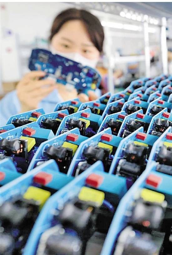 德清县雷甸镇一家新能源公司,工人在赶制新能源汽车智能无线充电桩及配套电路板产品。浙江新闻客户端拍友 谢尚国 摄