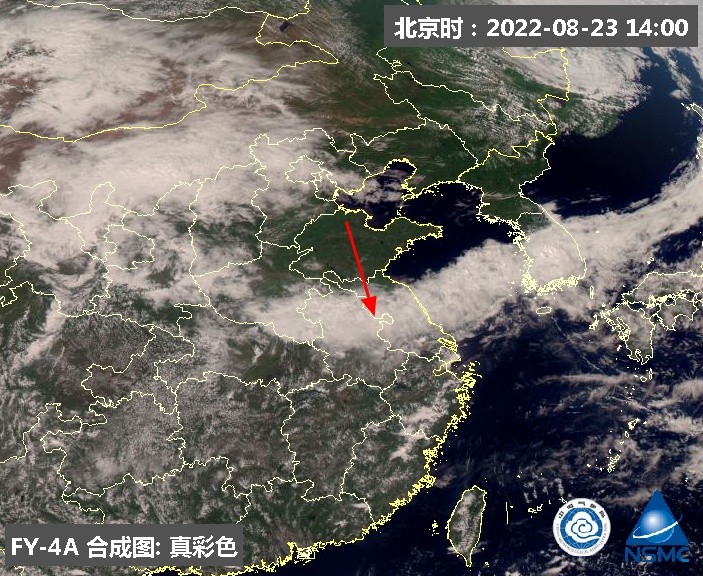 △从云图上看,23日14时,冷空气的前锋已经抵达江苏、安徽中部一带。(来源:国家卫星气象中心)