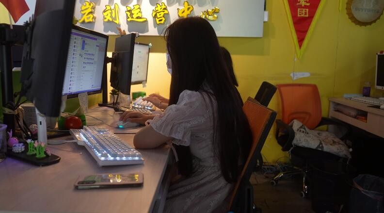 在当地一家直播电商仓库,记者看到工人们也正在忙着打包发货。
