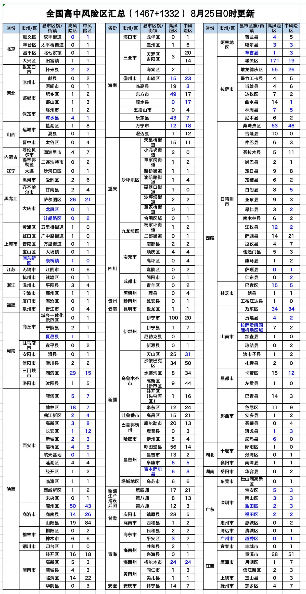 最新!全国现有高中风险区1467+1332,一图速览