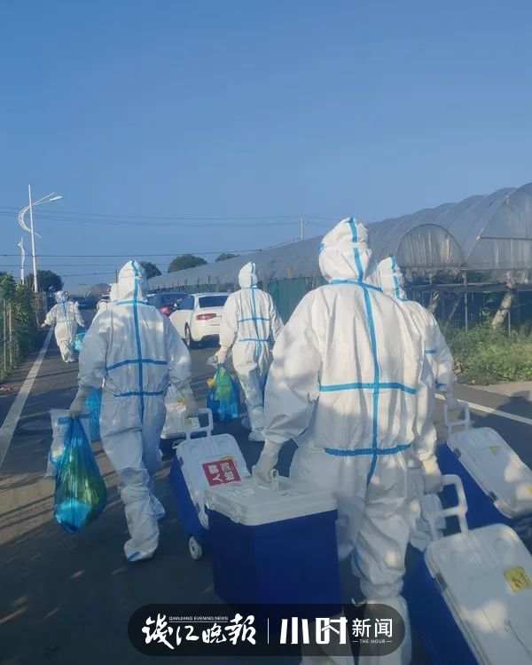 6点50分,迎着初阳,富阳区妇保院派出的部分采样队员行走在乡间小路上,他们的手里或是拎着医疗垃圾袋,或是拖着标本转运箱,上门为居家人员提供采样服务。这一次,区妇保院前后派出90名采样队员。