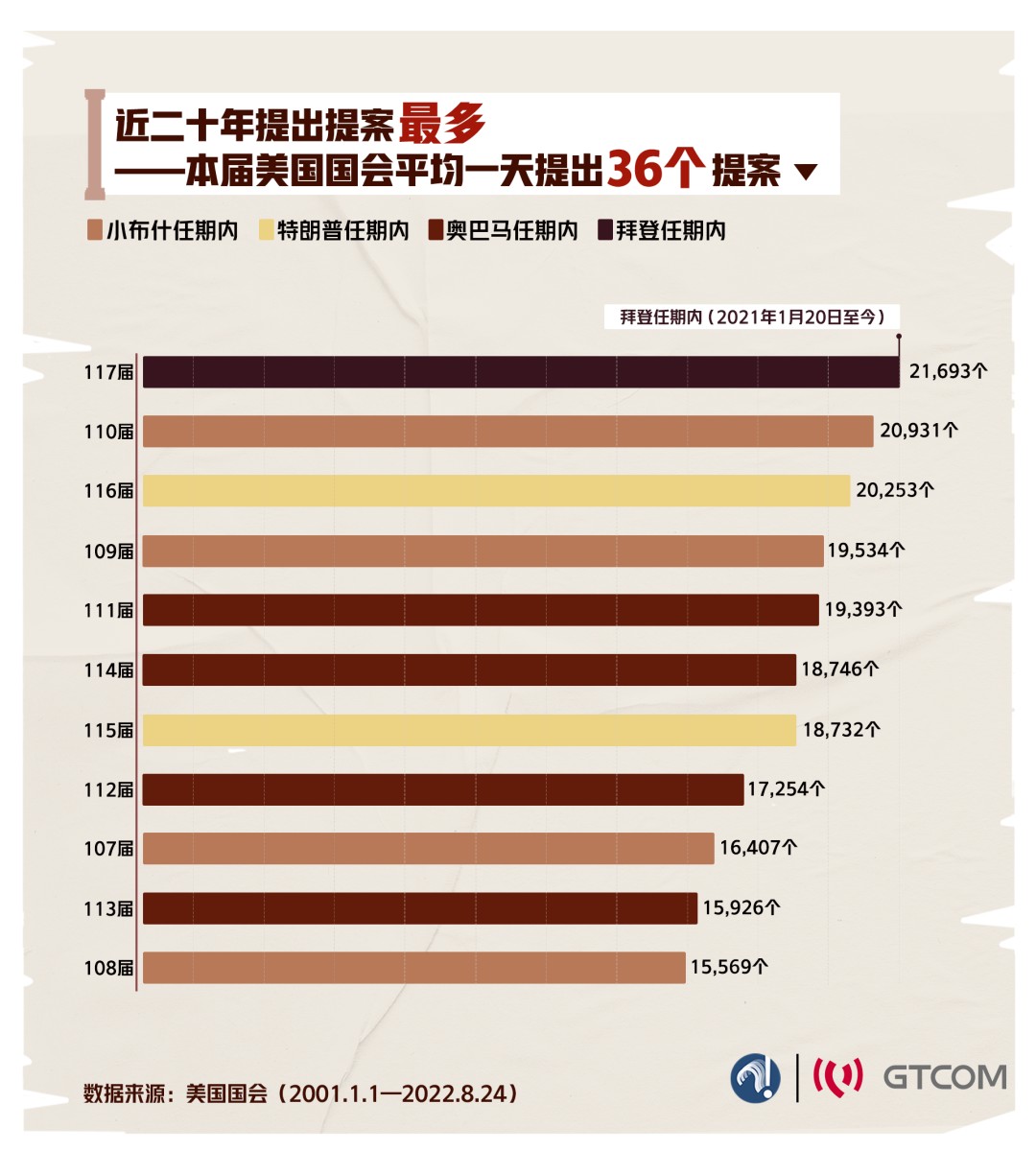谭主利用大数据手段统计后发现,到8月23日,本届国会议员已经提交了21693个提案,平均每天提出36.3个,是近20年来的最高水平。