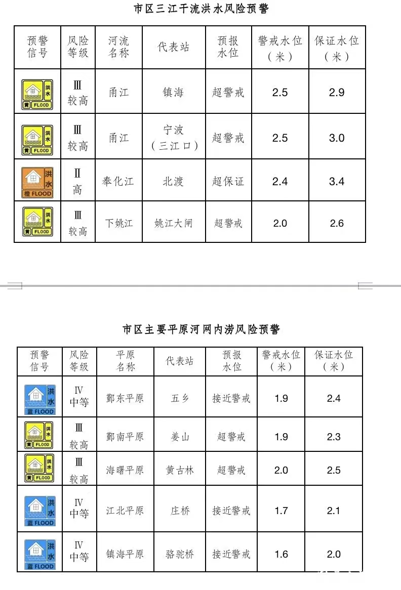 宁波市水文站发布洪水预警