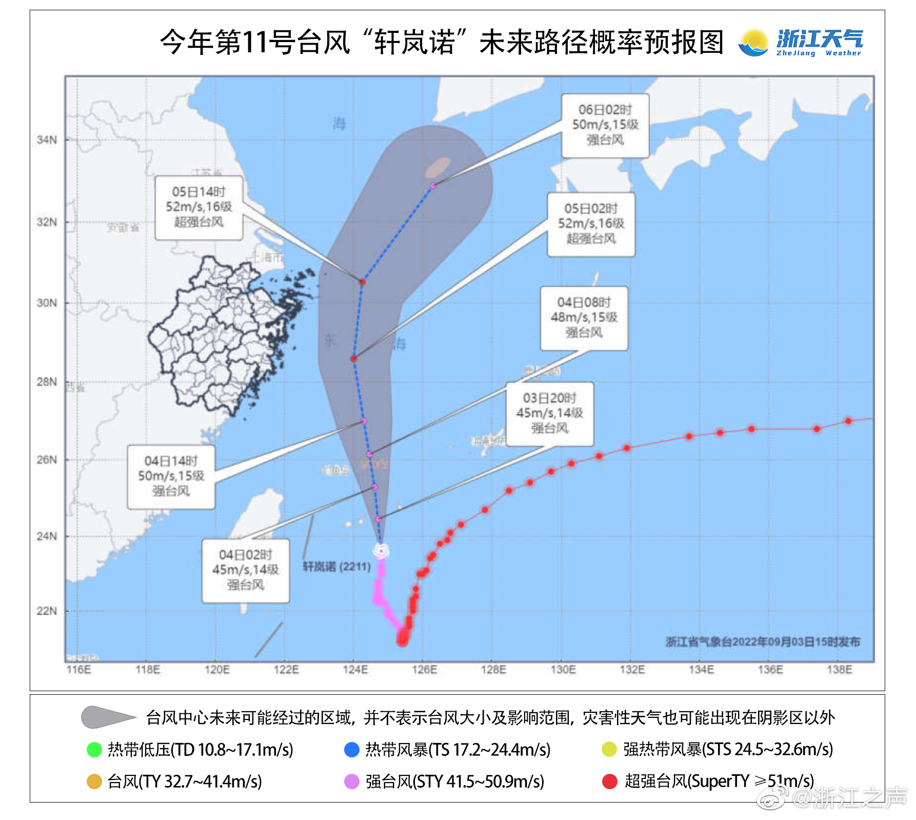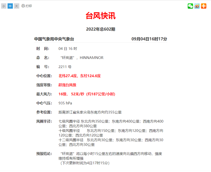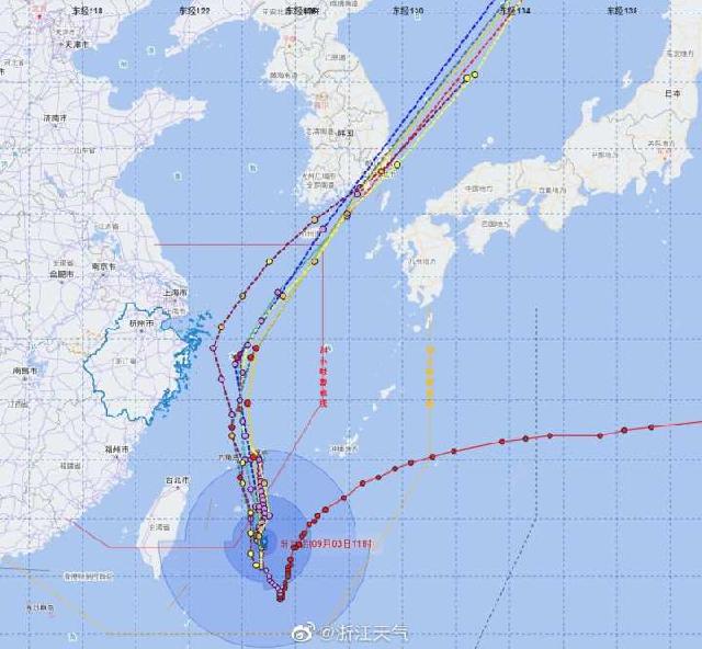 台风“轩岚诺”越来越近了!最近时离浙江海岸线约150~170公里