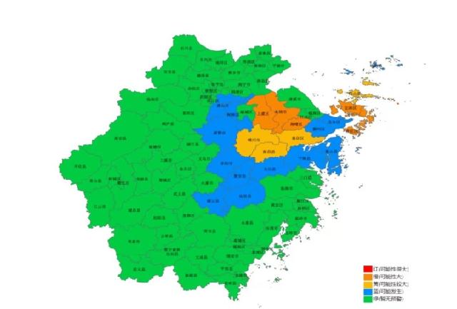 下午4点,浙江省自然资源厅发布地质灾害气象风险预报,9月3日18时至9月4日18时,宁波市(海曙区、江北区、镇海区、奉化区、余姚市、慈溪市)、绍兴市(上虞区)等部分地区地质灾害气象风险很高(红色预警);宁波市(北仑区、鄞州区)、绍兴市(新昌县、嵊州市)、金华市(磐安县、东阳市)、台州市(天台县)等部分地区地质灾害气象风险高(橙色预警);宁波市(宁海县)、绍兴市(越城区、柯桥区、诸暨市)、台州市(仙居县)等部分地区地质灾害气象风险较高(黄色预警)。