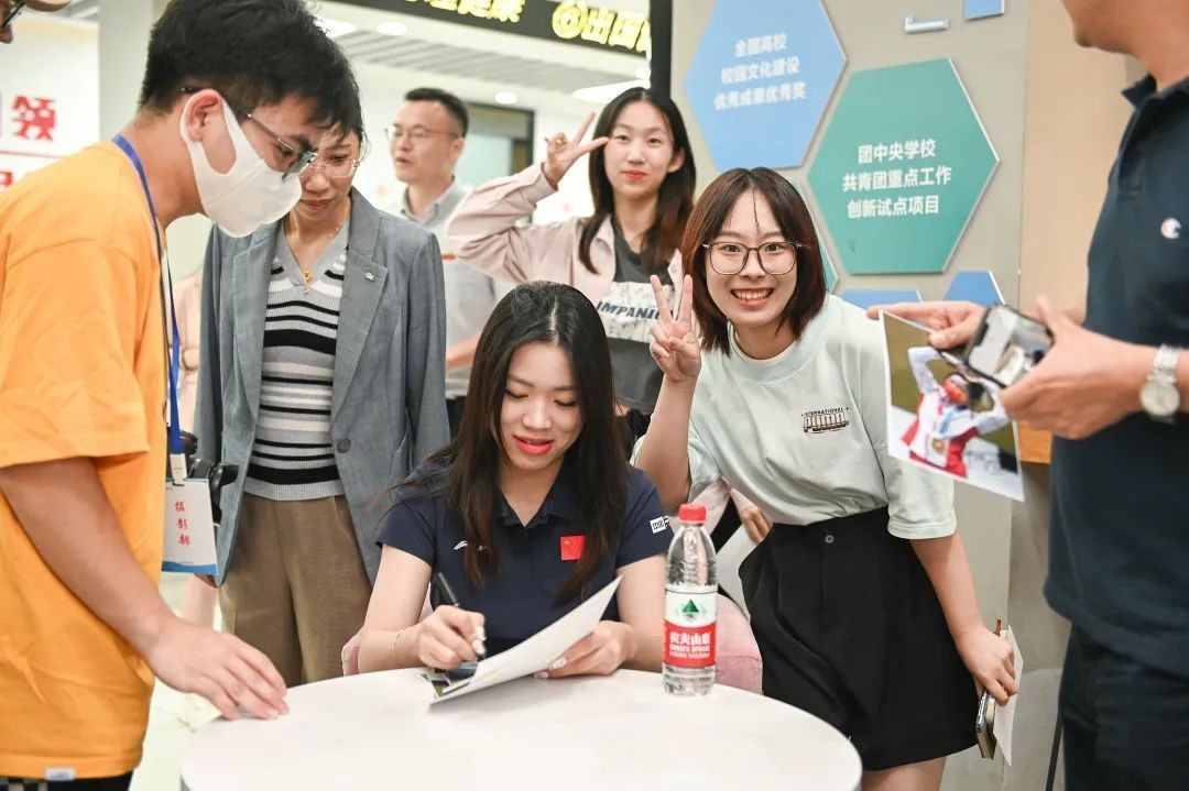 杨倩给同学们签名,图源:浙江万里学院微信公号