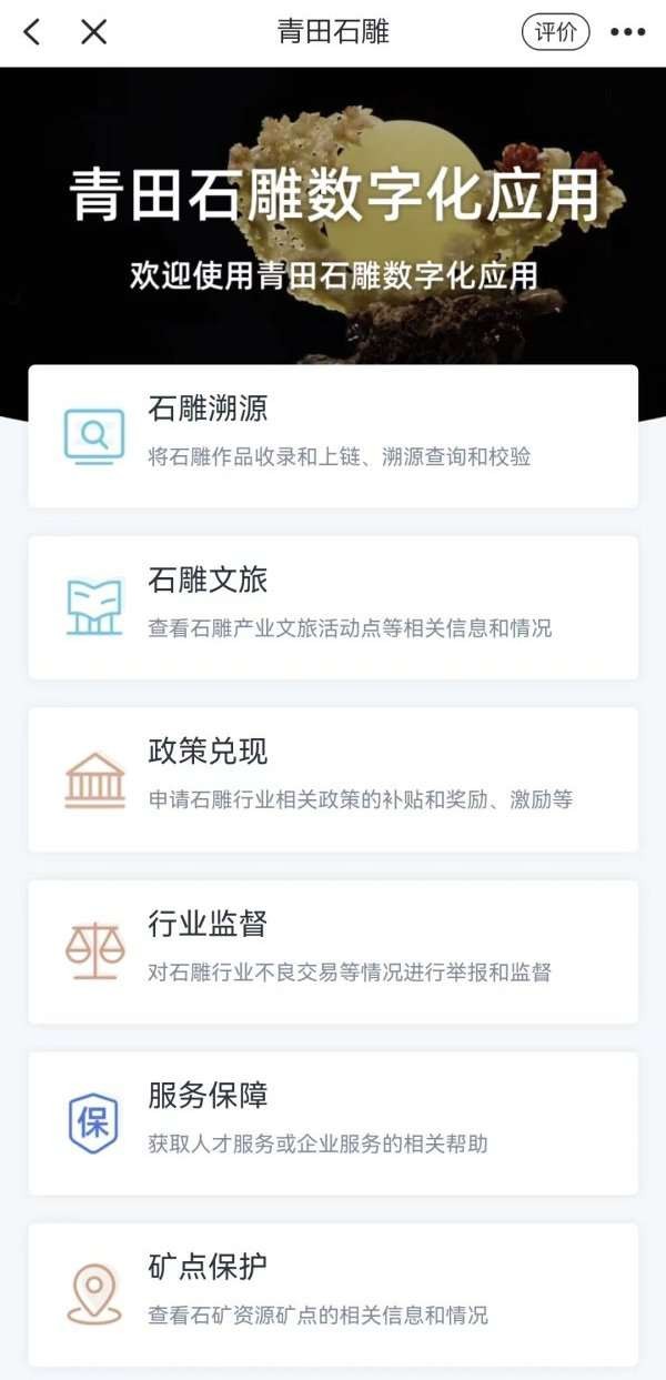 从多年玩家都要“慎之又慎”,到如今“菜鸟”也可放心参与,浙江十大历史经典产业之一的青田石雕进入发展新阶段。青田石雕行业协会相关负责人说,当地利用区块链技术,搭建涵盖石雕艺术品申报、管理、溯源三端的数字化应用,把石雕从石矿到成为艺术品再到交易的全生命周期都管了起来,啃下了阻碍行业扩大发展的“硬骨头”。