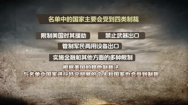 名单中的国家主要会受到四类制裁:限制美国对其援助、禁止武器出口、管制军民两用设备出口、实施金融和其他方面的多种限制;此外,根据美国的其他制裁法,与名单中国家进行特定贸易的个人和国家也会受到制裁。