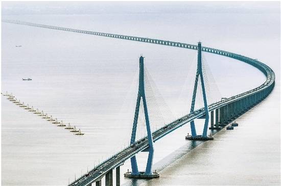 东海之上,长虹卧波,来往车辆川流不息。