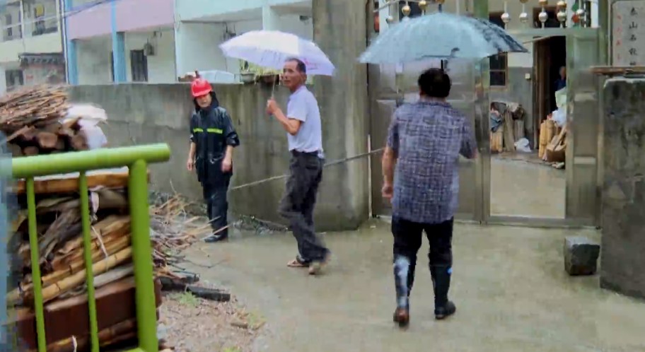 在宁波奉化区溪口镇,董溪一村、董溪二村要求全村转移,村干部、志愿者立即全体出动,挨家挨户上门进行劝说动员。