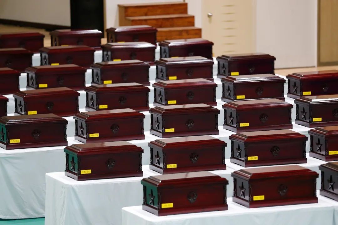这是2022年9月15日在韩国仁川拍摄的志愿军烈士棺椁。新华社记者 王益亮 摄