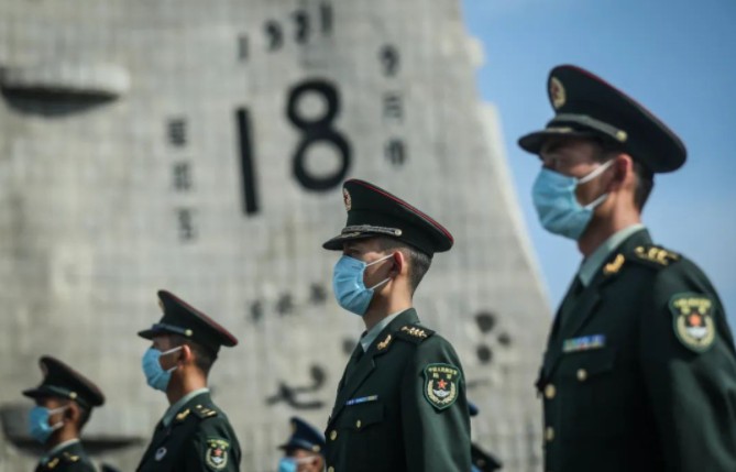 这是2021年9月18日拍摄的勿忘九一八撞钟鸣警仪式现场。新华社记者 潘昱龙 摄