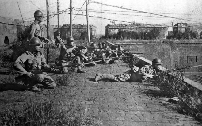 这是1931年9月19日,日军在沈阳外攘门上向中国军队进攻(资料照片)。新华社发