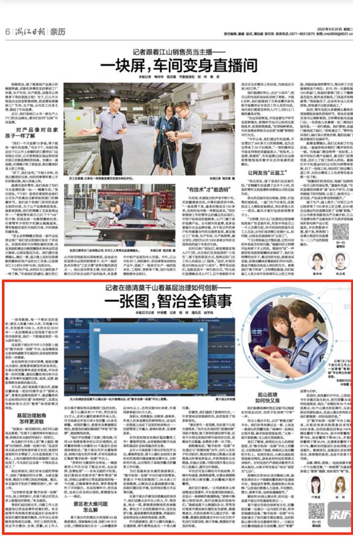 “应用软件连通‘数字治理一张图’平台,我上传的照片,在莫干派出所的大屏上就能实时看到。”朱文超说。