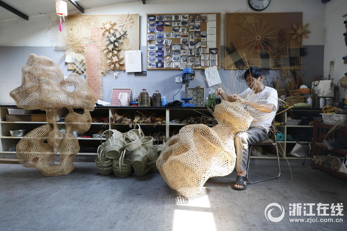 非遗手工艺人钱鑫明编织竹编作品 浙江在线记者 翁宇君 摄