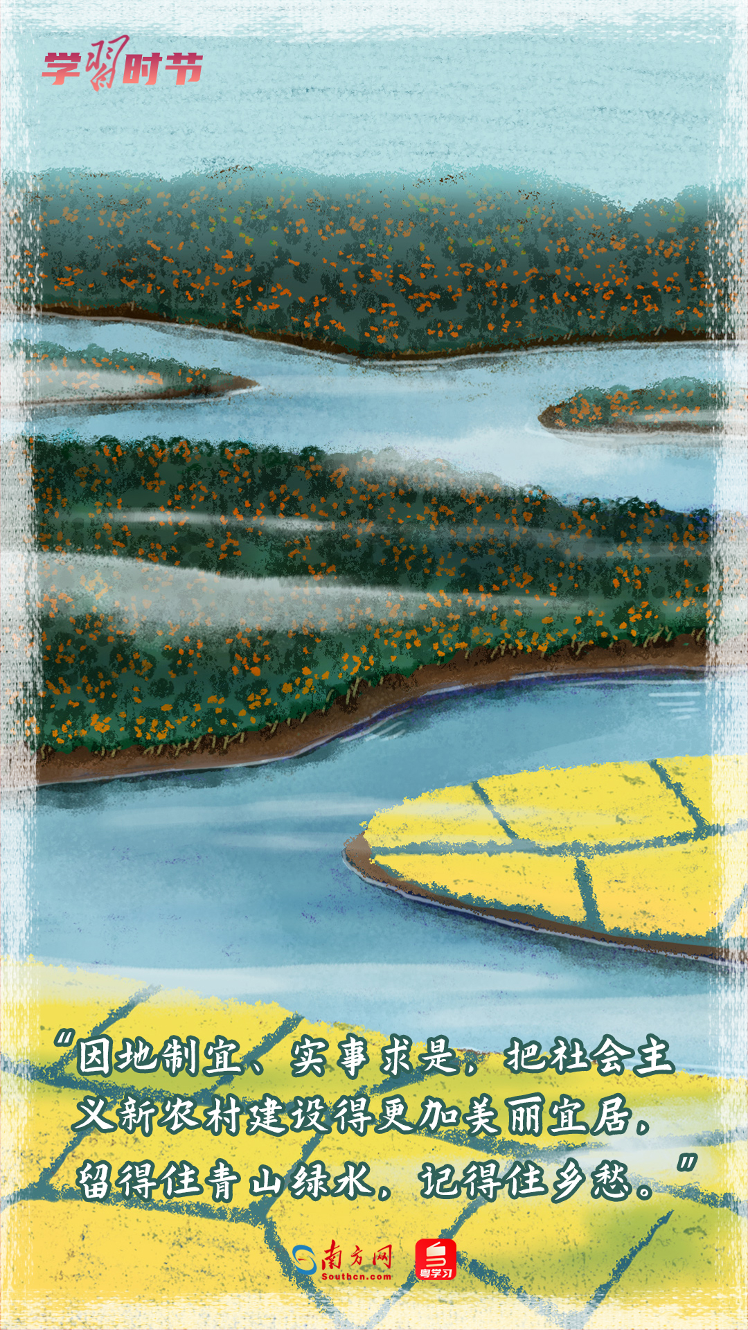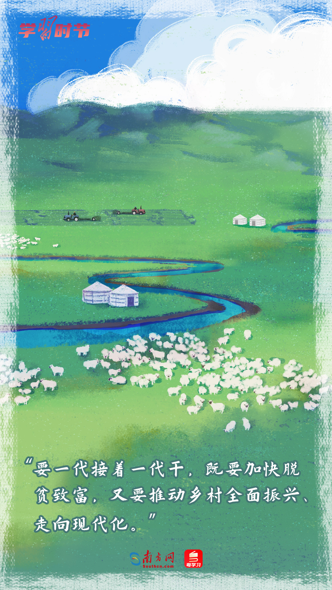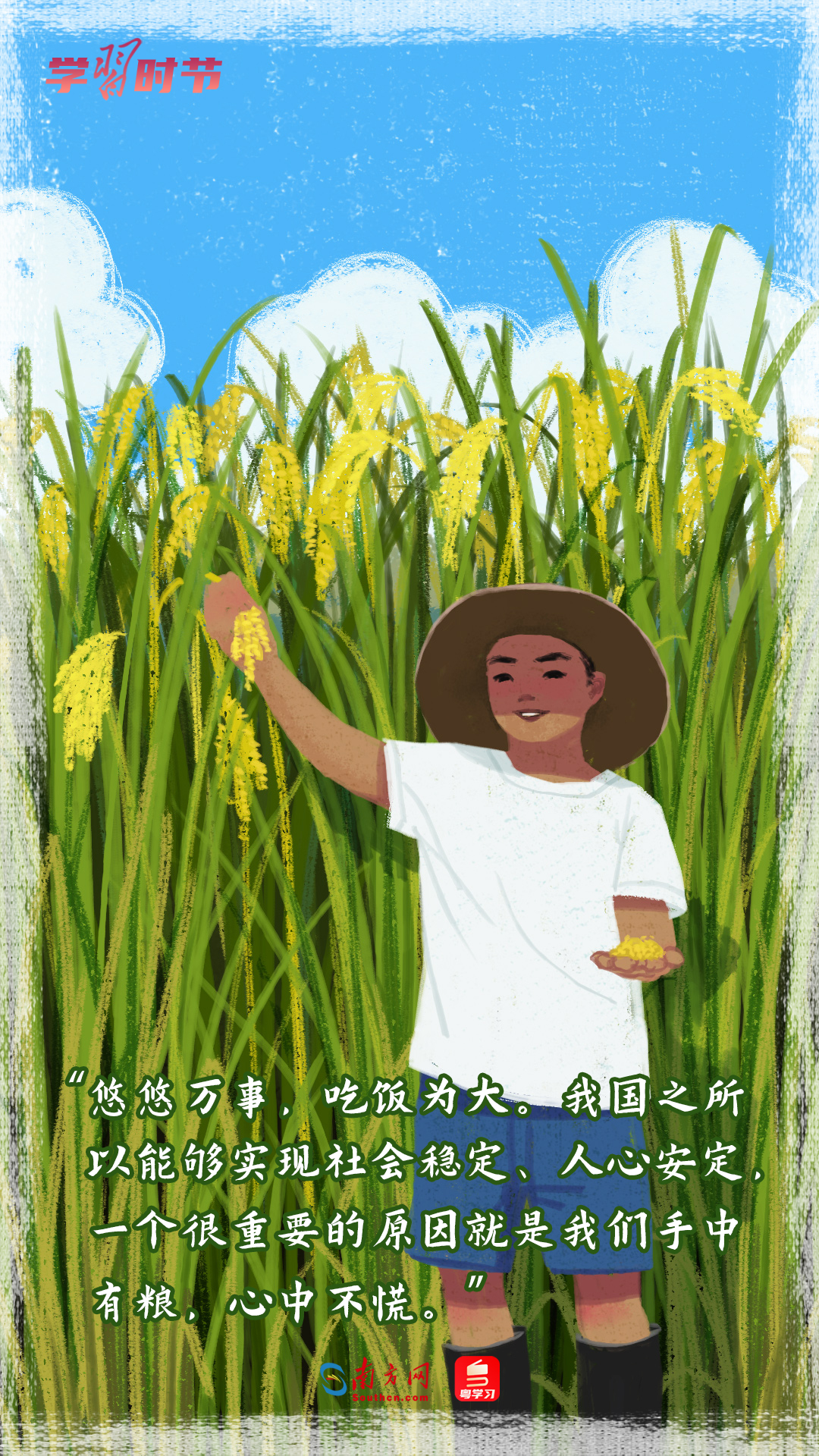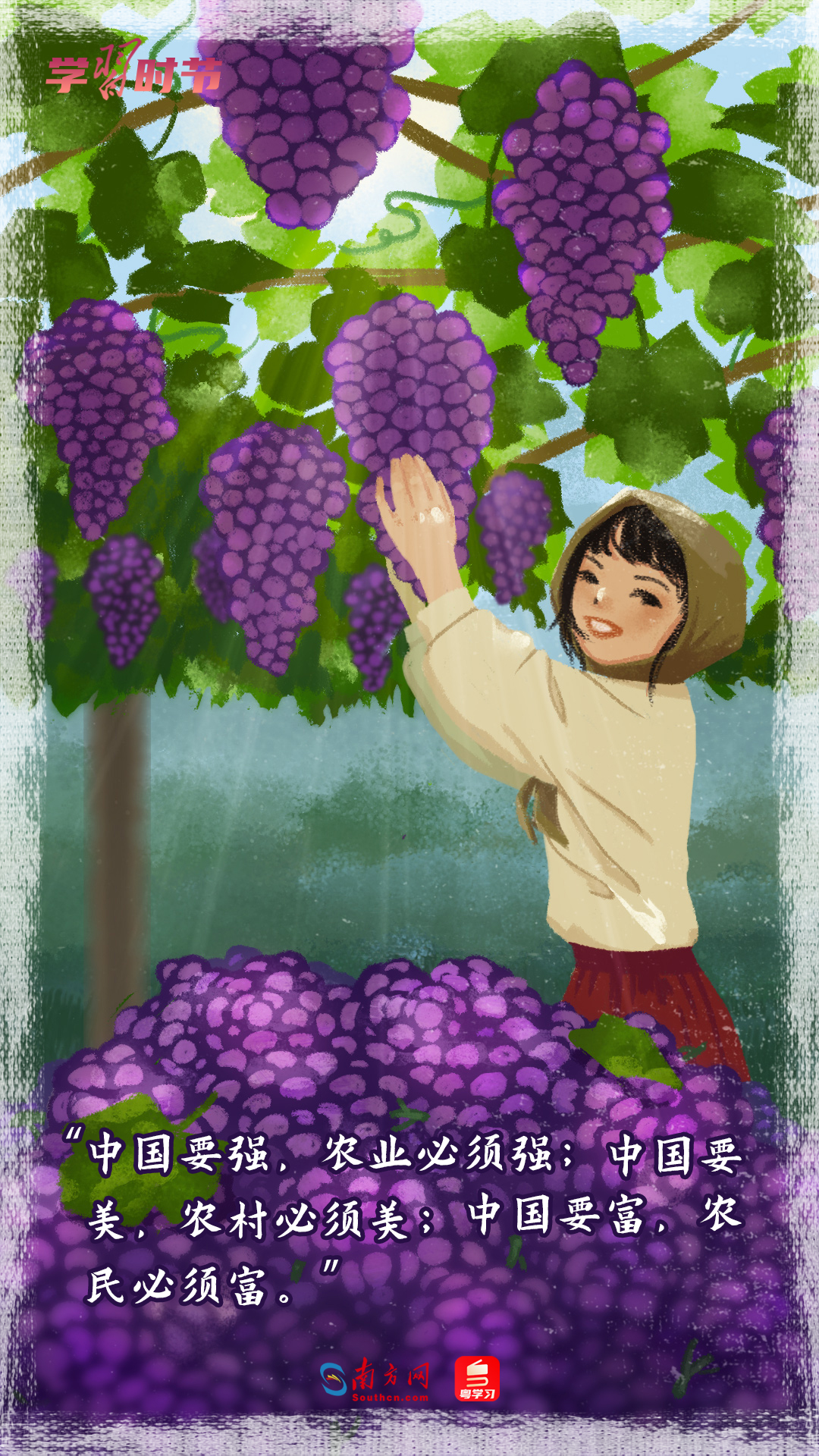 在这个喜庆的日子,我们认真学习习近平总书记关于“三农”工作的重要论述,结合大江南北多地的丰收场景,推出一组丰收节的手绘海报,一起重温这些经典的暖心话语。