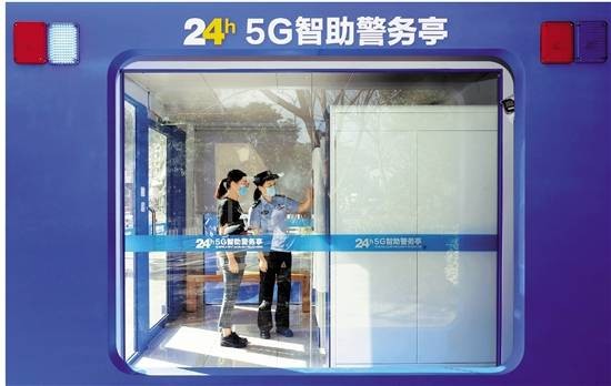 舟山市普陀区市民在24小时5G智助警务亭办理业务。 拍友 邹训永 摄