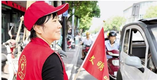 志愿者在织里镇街头参与文明劝导。 织里镇供图