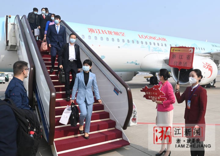 10月14日,北京,肩负全省426万余名党员的重托,承载着浙江人民的殷切期望,我省出席党的二十大代表抵达北京,向大会报到。浙江新闻客户端记者 胡元勇 摄