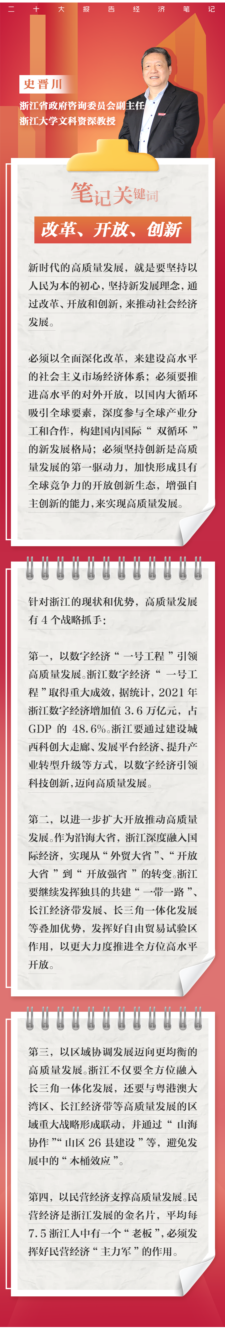 从党的十七大报告里的“促进国民经济又好又快发展”,到党的十八大报告的“加快转变经济发展方式”、党的十九大报告的“贯彻新发展理念,建设现代化经济体系”,再到此次“加快构建新发展格局,着力推动高质量发展”的阐述,历届报告表述的变化,也愈发明晰地勾勒出中国经济发展模式的轮廓。