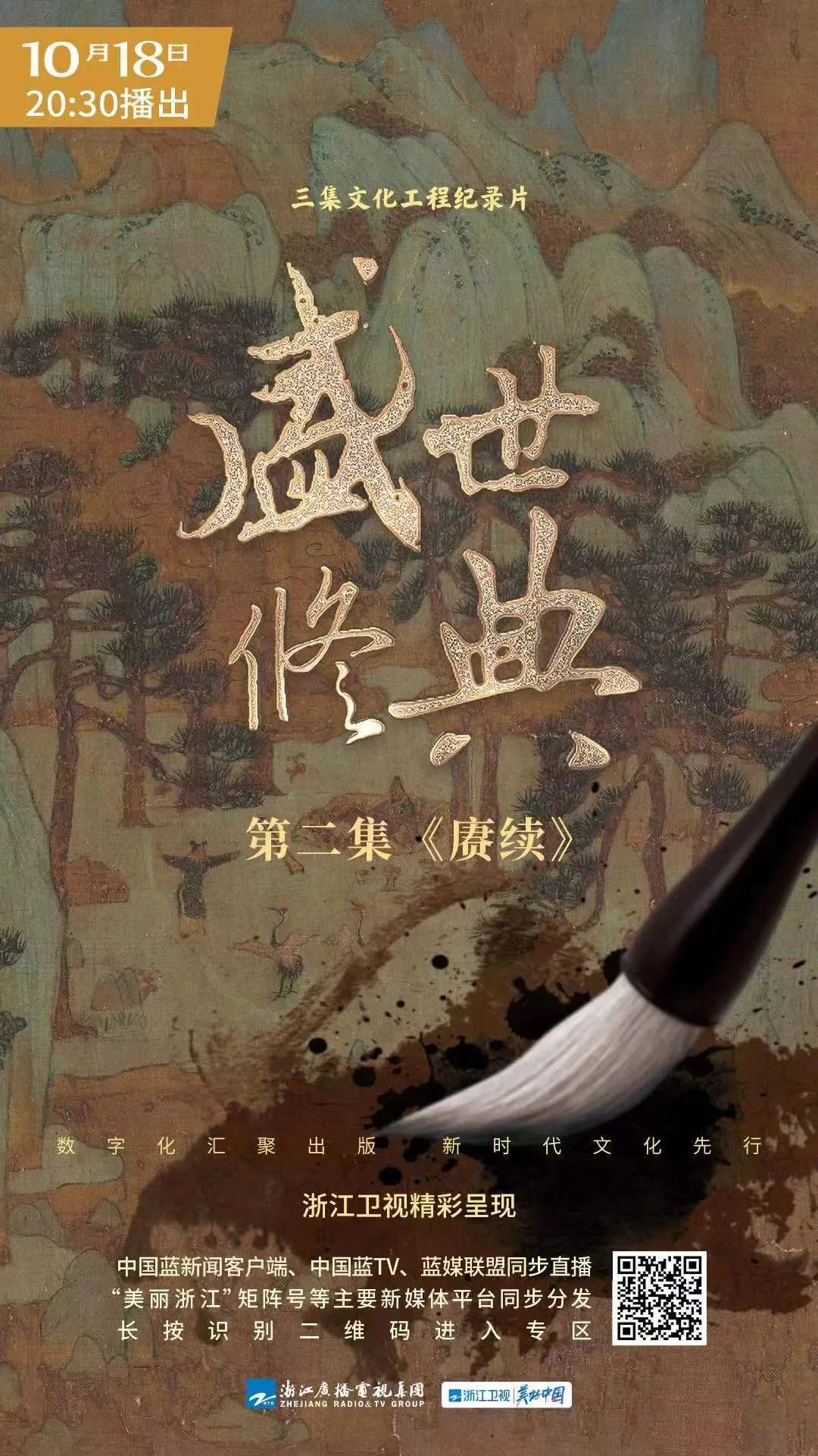 今晚20:30,敬请锁定由浙江广电集团出品,联合浙江大学精心打造的三集文化工程纪录片《盛世修典》第二集《赓续》,穿梭千年丹青,感受生生不息的中华文脉。