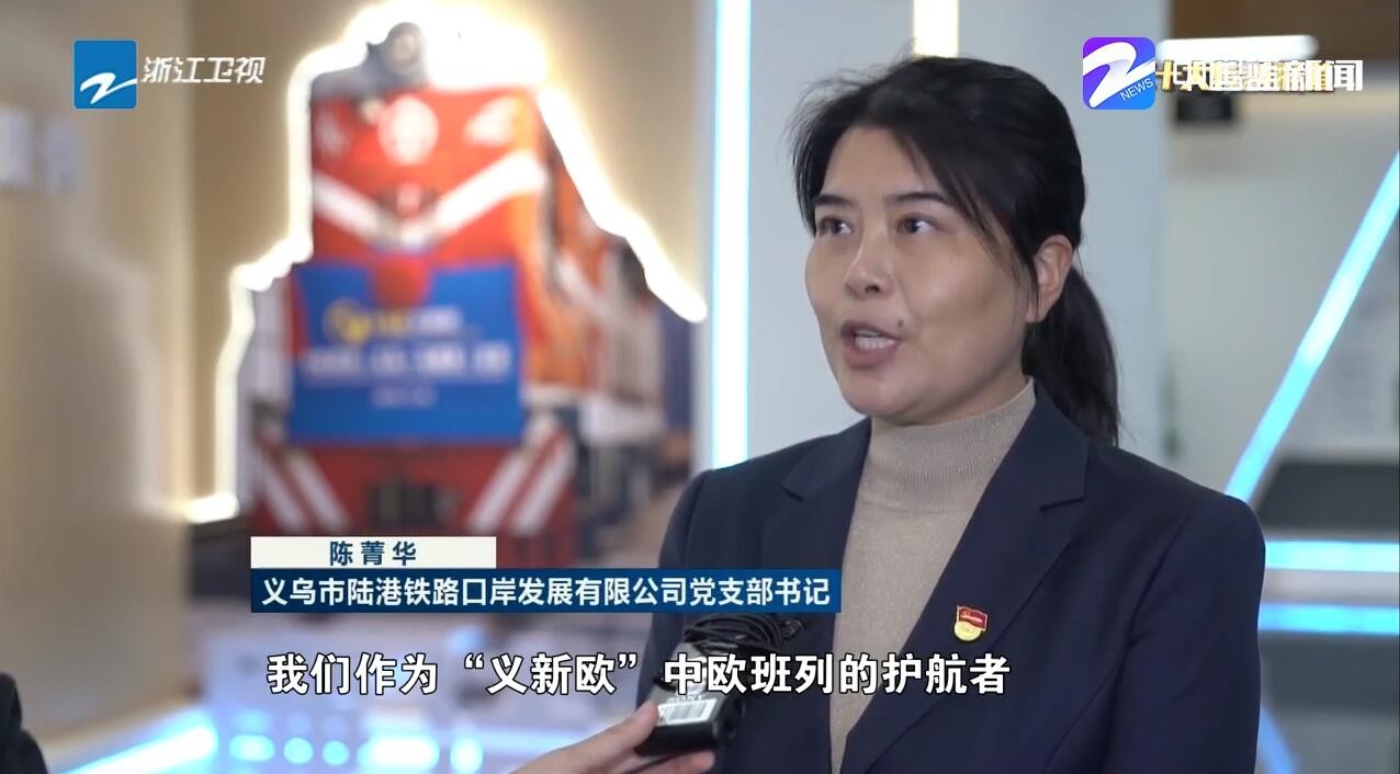 义乌市陆港铁路口岸发展有限公司党支部书记陈菁华说:“我们作为‘义新欧’中欧班列的护航者,主动融入国内国际双循环,推动共建‘一带一路’高质量发展。”
