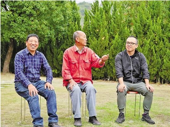 在九坑自然村葡萄酒庄园的草坪上,联城街道下林村村民热议党的二十大报告,共谋山村发展。 本报记者 邱建平 摄