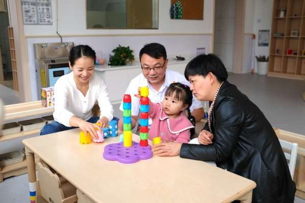 读绘本、玩积木、唱儿歌……在园长周伟玲的引导下,2岁多的佳佳玩得不亦乐乎。周伟玲说,幼儿园专为外来务工人员开设,不受户籍限制,还开设了托育班。