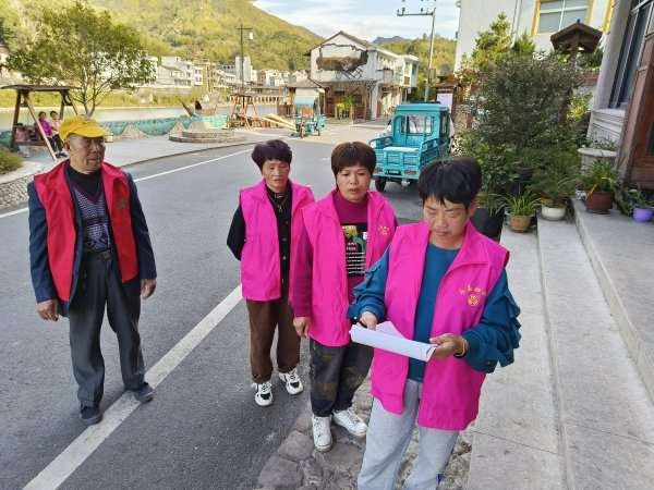 10月22日下午,永嘉县岩坦镇源头村党委书记陈小静和几位村干部走街串巷,挨家挨户检查卫生。