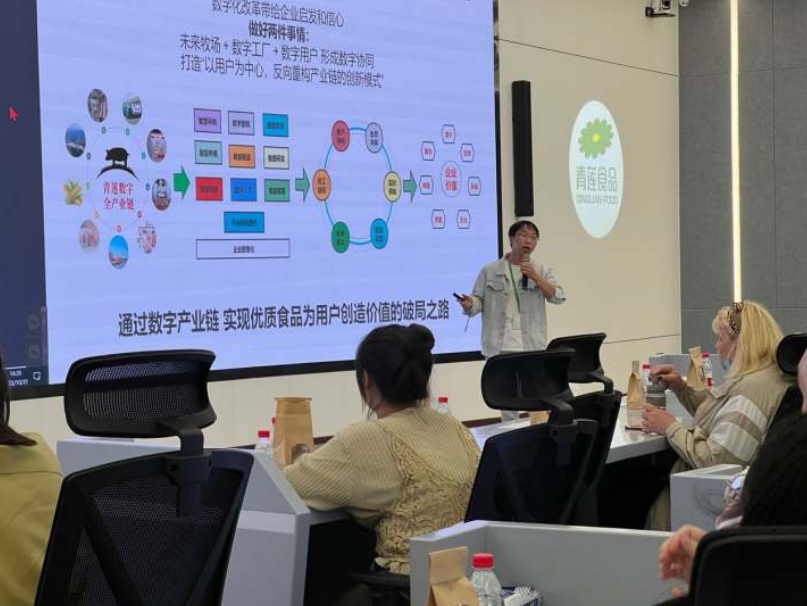 在青莲食品股份有限公司,采访团参观了“种质研发、智慧养殖、绿色生态、标准屠宰、冷链运输、精深加工、数字销售、品牌驱动、牧旅融合”于一体的生猪高质量全产业链,对浙江以“一块猪肉”实现百亿级全产业链共富生态点赞。