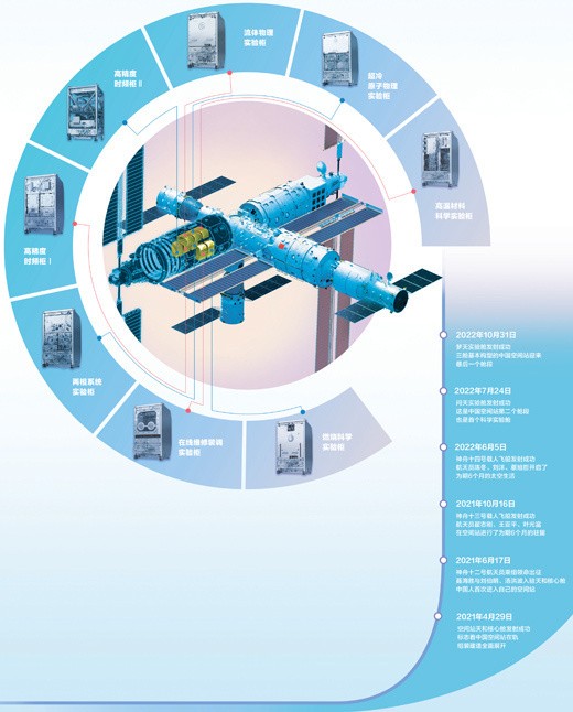 先期携带8个科学实验柜,主要面向微重力科学研究