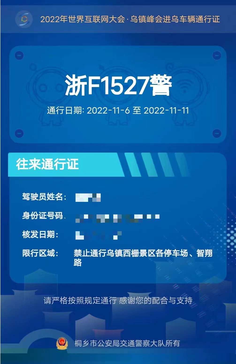 据了解,今年申领电子入乌通行证除了前往乌镇中队、城西中队现场申领之外。还有三种网上申领途径,一是通过“桐乡公安”微信公众号,右下角点击“峰会畅行”按钮申请;二是下载桐乡交警官方APP“交安桐享”,在APP内按照提示申请。交安桐享的下载二维码已在“桐乡公安”微信公众号公布,目前仅支持Android系统手机用户;三是针对外来驾驶员和车辆,或是不熟悉乌镇管控政策的驾驶员,在使用高德、百度等导航软件时,如果导航目的地在乌镇范围,会自动生成入乌提示,点击入乌提示就能跳转至通行证申领页面。需要注意的是,入乌通行证的申领人必须持有机动车驾驶证。