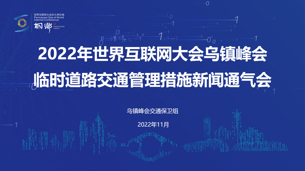 2022年世界互联网大会乌镇峰会日益临近,为确保大会顺利召开,保障道路交通安全畅通,11月3日,乌镇峰会交通保卫组召开新闻通气会,向媒体公布了峰会期间临时道路交通管理措施以及申领入乌通行证的有关情况。