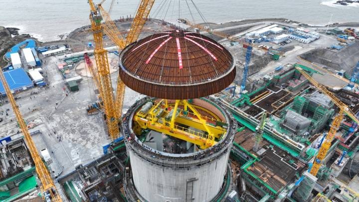 11月3日14时07分,中国广核集团浙江三澳核电项目1号机组顺利完成穹顶吊装,标志着该机组从土建施工阶段全面转入设备安装阶段。