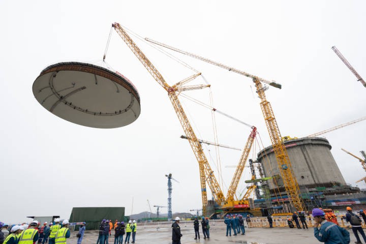 穹顶位于核岛顶部,是核电站第三道安全屏障的关键组成部分,对于保障反应堆厂房完整性和密封性,实现固有安全特性具有重要意义,穹顶吊装因此成为核电工程建设的重要里程碑节点。