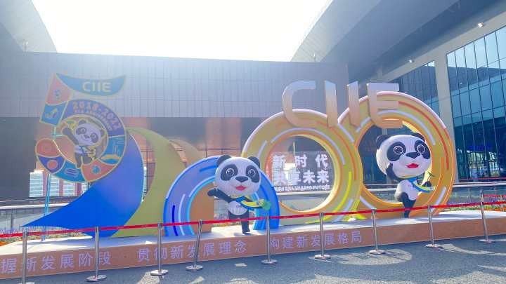 11月3日,第五届进博会静待开展。图为展示的“诗画江南 活力浙江”号飞机模型。浙江新闻客户端记者 李震宇 魏志阳 吕之遥 俞碧寅 摄