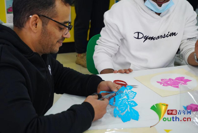 外籍居民在鸡鸣山社区参加剪纸活动。 中国青年网记者 曹迪摄